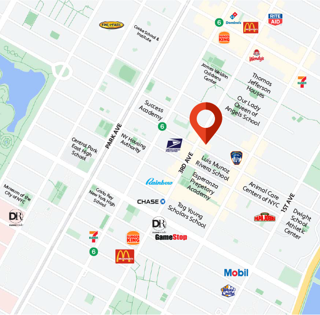 Nestled between Central Park and the Harlem River, East Harlem is a vibrant and diverse community rich in culture and history. Known for its welcoming atmosphere, this bustling neighborhood is home to a mix of families, young professionals, and long-time residents, creating a dynamic and inclusive environment. With a strong sense of community and an array of local businesses, East Harlem offers the perfect backdrop for your commercial venture.